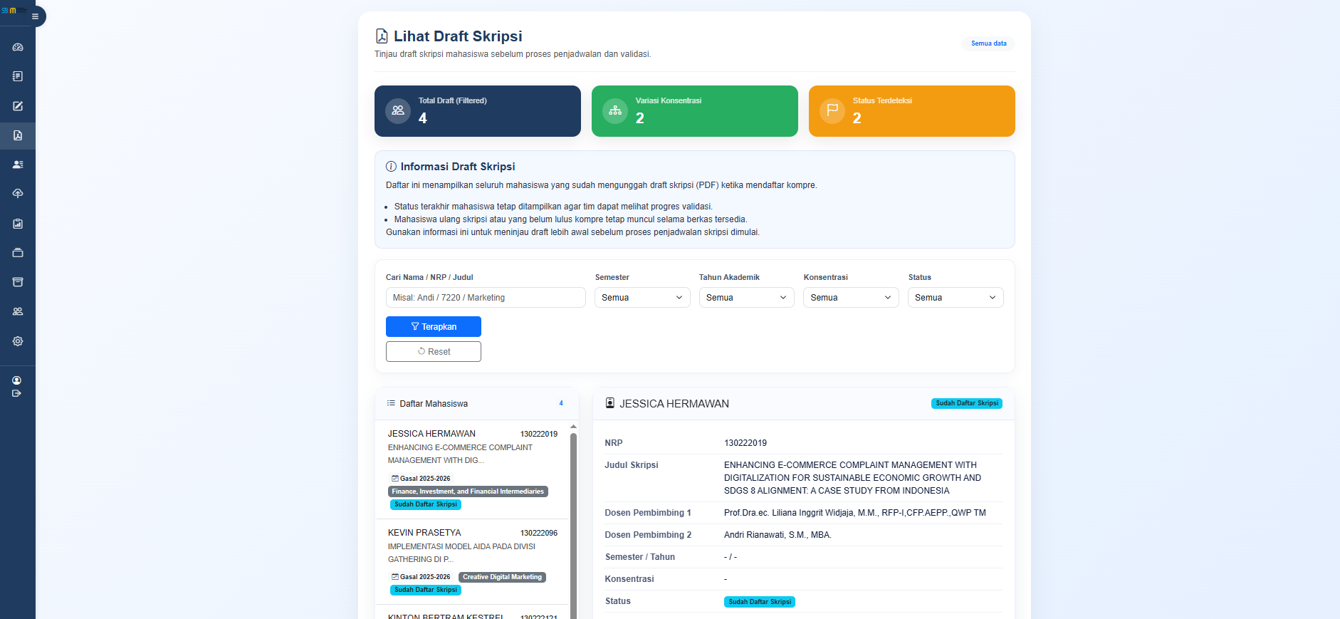Sistem bimbingan mahasiswa dengan fitur monitoring, advis, unggah dokumen, dan tracking pr...